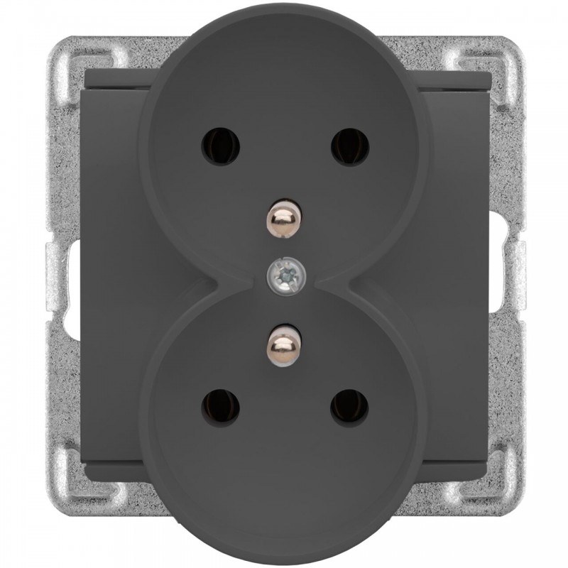 VERONA Gniazdo podwójne z uziemieniem bez ramki kolor bazalt GP-2EZ/M.BT Napięcie znamionowe: 250V Prąd znamionowy: 16A Stopień ochrony: IP-20 Zaciski: gwintowe