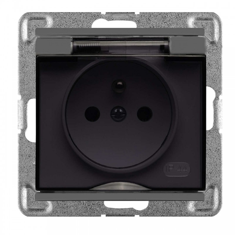 VERONA Gniazdo bryzgoszczelne z uziemieniem IP44 bez ramki kolor bazalt GPH-1EZ/M.BT Napięcie znamionowe: 250V Prąd znamionowy: 16A Stopień ochrony: IP-44 Zaciski: gwintowe