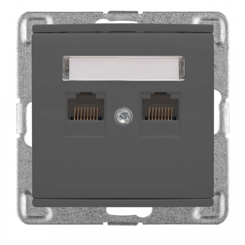 Verona Gniazdo komputerowe podwójne kat. 6 bez ramki, kolor bazalt GPK-2E/F/M.BT Stopień ochrony: IP-20